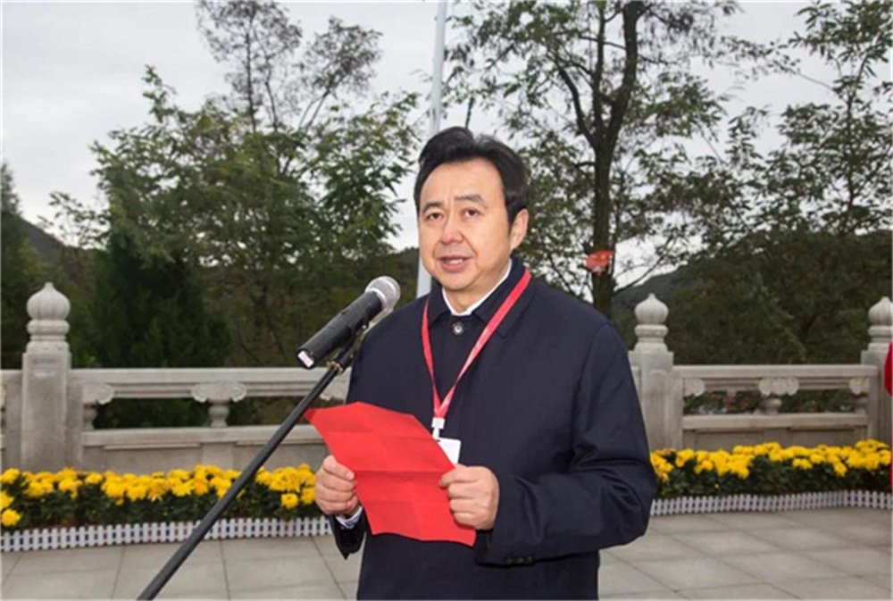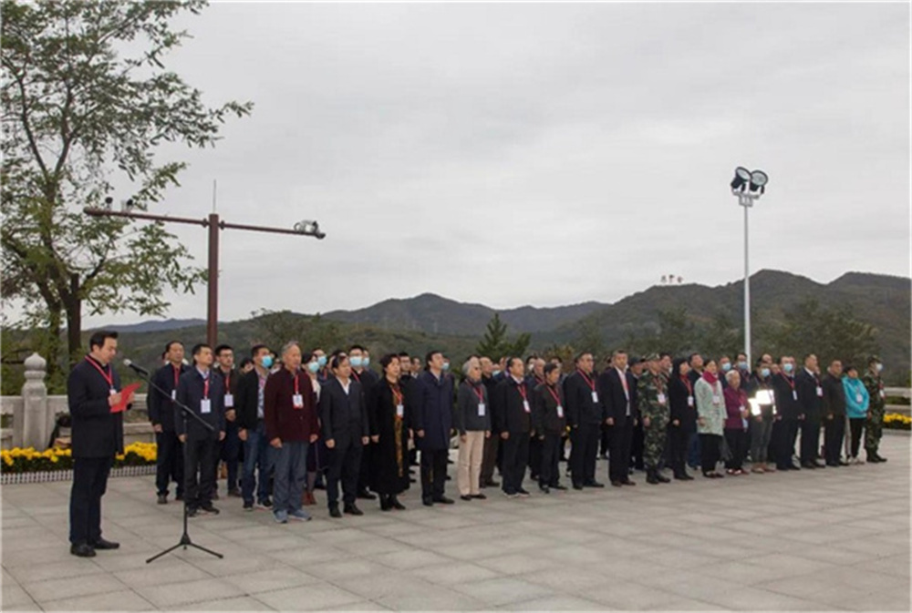 10月15日上午,全体与会同志在陕甘边革命根据地英雄纪念碑前举行“缅怀革命先烈·牢记初心使命”敬献花篮仪式。中共铜川市委副书记魏四新参加,市委常委、市委组织部部长黄勇主持仪式,革命先辈亲属谢子长之孙谢明整理花篮缎带。