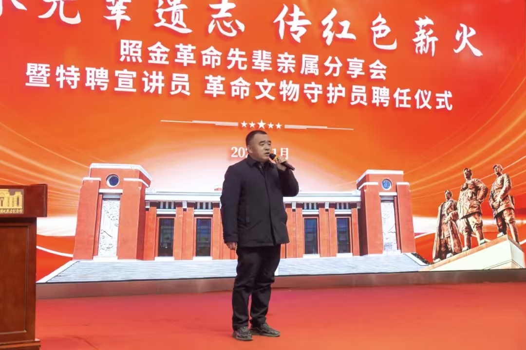 照金纪念馆馆长刘亮在致辞中表示,今年是“十五五”的开局之年,纪念馆围绕国家一级博物馆的职责与定位,系统谋划文物征集、主题策展等系列重大活动,此次邀请在照金战斗过的革命先辈及革命群众亲属来馆,举办革命亲属分享会暨特聘仪式,既是进一步贯彻市委全会的具体举措,也是再次打磨沉浸式思政课的全新尝试。余小强、王前两位同志作为革命亲属,是红色历史的见证者,更是最鲜活、最具温度、最有力量的“红色教材”,期待通过他们的亲身讲述,让照金的革命故事更加立体可感,让照金精神更加深入人心。