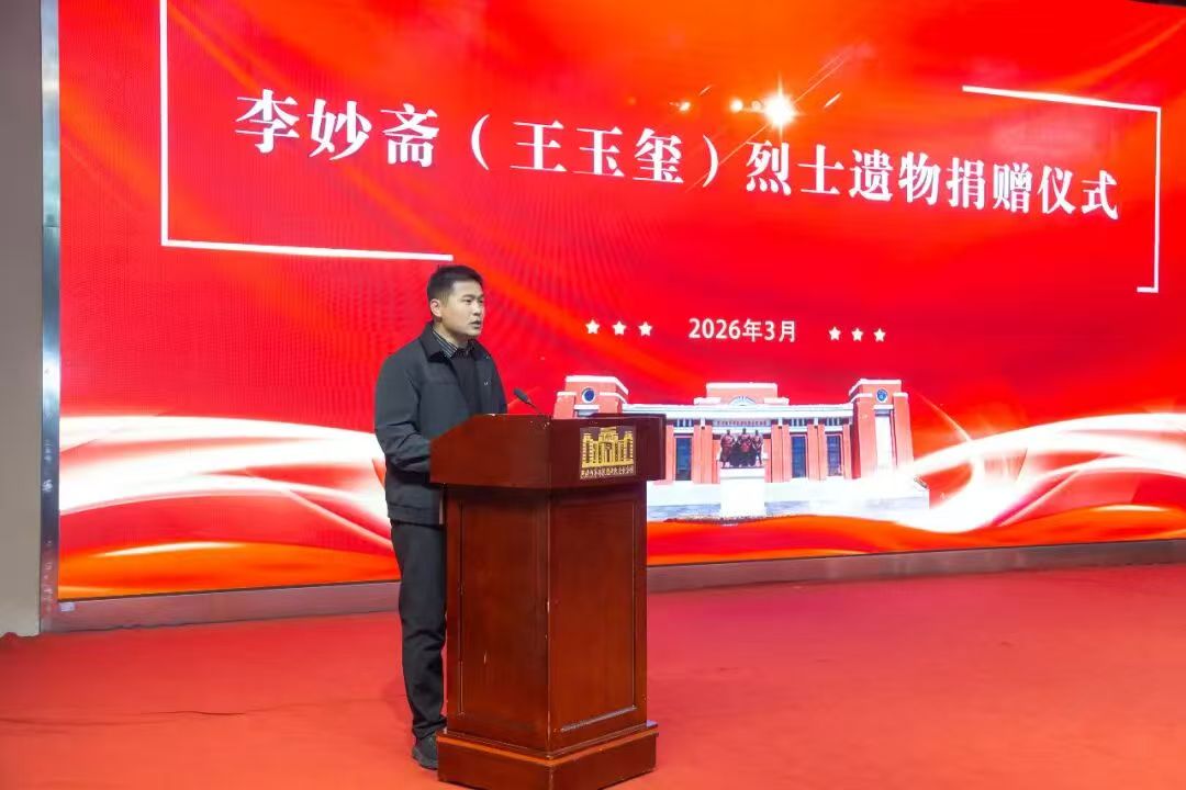 仪式上,王前深情讲述了捐赠背后的故事。他表示,自己从小听着先辈的革命故事长大,曾祖父在照金抛洒热血、英勇献身的精神,深深烙印在心中,也让家人们与照金结下了不解之缘。这些遗物是家人与亲人之间最珍贵的羁绊,也是心中最深的念想。1933年9月李妙斋不幸牺牲后,被安葬在薛家寨牺牲的山坡上,每年清明时节家人都会前往祭奠。今天将这些遗物捐赠于此,就是为了让思念找到归宿,让红色记忆得以更好留存和传承。
