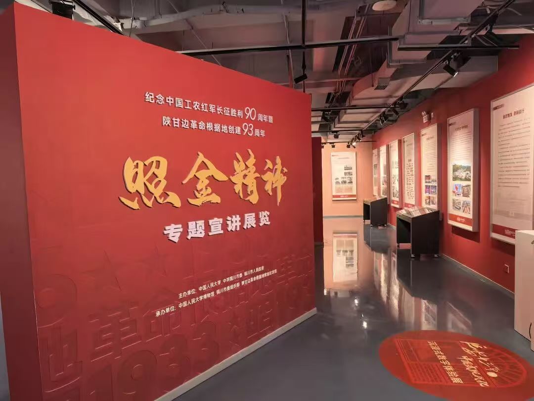 4月8日,由中国人民大学、中共铜川市委、铜川市人民政府主办,中国人民大学博物馆、铜川市委组织部、陕甘边革命根据地照金纪念馆承办的纪念中国工农红军长征胜利90周年暨陕甘边革命根据地创建93周年照金精神“大思政课”进校园专题宣讲展览活动在中国人民大学举办。中国人民大学党委副书记郑水泉、铜川市委组织部副部长张延峰分别致辞。中国人民大学博物馆、校史馆馆长李贞实主持。校地双方相关单位负责人、师生代表共120余人参加活动。
