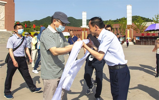 5月19日,陕西省体育局党组书记、局长王勇一行到照金纪念馆开展党史学习教育,重温入党誓词,并向陕甘边革命根据地英雄纪念碑敬献花篮。