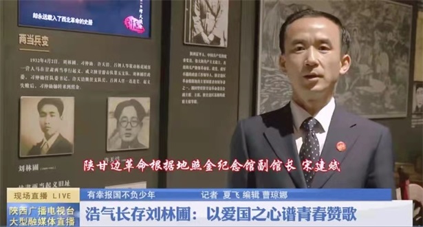 5月3日,照金纪念馆副馆长宋建斌在陕西广播电视台大型融媒体直播节目中为观众讲述了红色故事《浩气长存刘林圃:以爱国之心谱青春赞歌》。