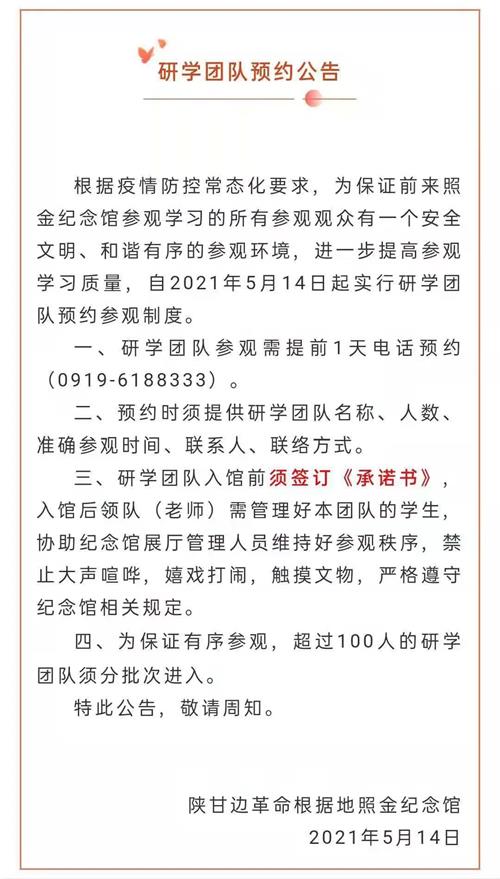 5月14日,照金纪念馆发布研学团队预约公告。