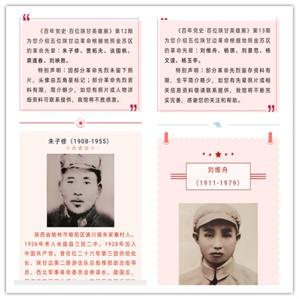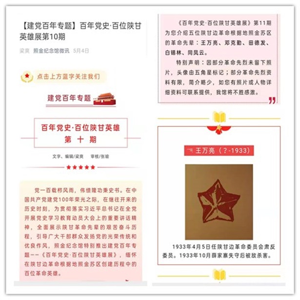 5月,照金纪念馆发布第10—13期【建党百年专题】百年党史·百位陕甘英雄展。