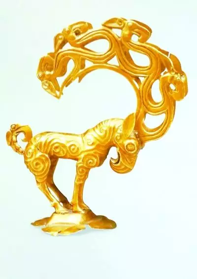 ▲图为陕西历史博物馆收藏的神兽金饰