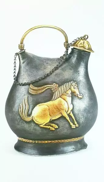 ▲图为陕西历史博物馆收藏的唐舞马衔杯银壶